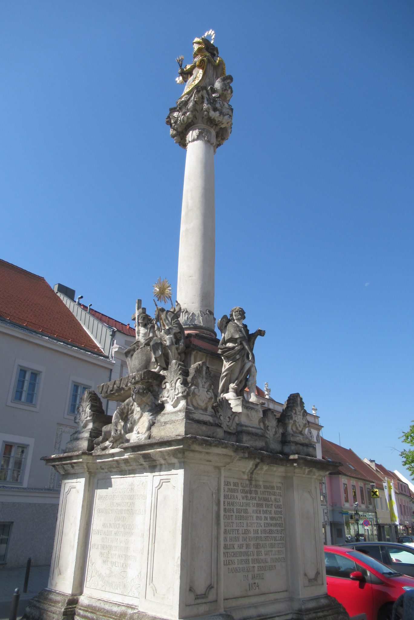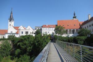 Angenehmes verkehrsarmes „Floaten“ durch die Landschaft des WeinviertelsMein britisches Zimmer….Das Laaer Rathhaus. Zur Erinnerung an das 50-jährige Regierungsjubiläum von Kaiser Franz Josef anno domini MDCCXCVIII erbaut 🙂Das Stadtwappen als Kanaldeckel, und allenthalben schon österliche DekorationenDe Bepflanzung und das Land dürstet ….Mein schickes Gratisradl. Der Schlossgeist hatte leider auch noch Winterruhe… Die lokale Biermarke gleich um die Ecke vom WunderlandBemerkenswertes in der Stadt…„Dieses Haus“ ist das alte Rathaus… Die allgegenwärtige Thaya, die ich mit dem Rad in beide Richtungen aus der Stadt kommend begleite Die Familie Trost tröstet Hungrige mit Riesenportionen und offenem GeschäftBeim Radeln an der Thaya entdeckt…Das Pippi Langstrumpf-Pferd…Ein kräftiger Regen und die Knospen platzen…Die Besichtigung der Burg und des Butterfassturmes heb ich mir für morgen aufDer Großvater von Oligarch Deripaska war im Zweiten Weltkrieg nahe Laa Stadt gefallen und wurde auf dem örtlichen russischen Soldatenfriedhof begraben. Die Kirche ist laut „Kathpress“ eine Nachbildung der russisch-orthodoxen „Mariä-Schutz-und-Fürbitte-Kirche an der Nerl“ bei Wladimir in Russland. Das Original der Kreuzkuppelkirche gilt als eines der bedeutendsten Denkmäler altrussischer Baukunst und zählt zum UNESCO-Weltkulturerbe.Nachhaltiger Verwendungszweck für alte SchuheFreilaufendes Hendl im Schubertpark … immer oder nur zu Ostern?Durchgang auf den BurgplatzPfarrkirche von Laa an der ThayaEine künstlerische Variante des FastentuchesAbends in den Schwarzen Peter, einem zum Wunderland gehörigen Lokal Burg LaaIch trau mich – ganz allein – auf den TurmDie Stiege ist nur 50 cm breit !!!Die angekündigte ( Video ) – Überwachung ?Freigelegte Wandbemalungen im Turm…Blick von oben in den Innenhof, auf den Burgplatz und auf den Staatzer Burgberg…Sehr interessante Kunstobjekte im öffenetlichen Raum. Hier (ein) MIKADO Häuser:Reigen….Das FossilDie FamilieStress – Sinn des LebensEntlang der ThayaVielseitige DachlandschaftEine richtig knorrige KopfweideEine Kapelle und daneben freilaufende Gänse – Martini ist noch weit wegKontrastprogramm beiderseits der Strasse : links (oben) eine neue Wohnanlage und rechts (unten) alte Geräteschuppen Mittagessen bei der Familie Trost…In steirischer Handarbeit gebunden – die Rosen oder nur die Sträusse ?Dieses Tagpfauenauge wohnt auch im Wunderland…Auf nach Kirchstetten zum Schloss …Eine hübsche Wehrkirche. Das Schloss der Familie von Suttner versteckt sich hinter Mauern und TannenbäumenDie Familiengruft derer von Suttner. Durch ein Loch in der Mauer gelingt ein seitlicher Blick auf das Schloss.Weiter geht die Fahrt nach Falkenstein. … und die alte Pfarrkirche..die überraschenderweise eine barrocke Front mit einem gotischen Turm aufweist. Eine ungewohnte KombinationEingang zur Burgruine, die noch geschlossen ist, und ein weiter Blick ins trockene LandIn diesem Baum wohnen Bienen .. Wenn man genau hinsieht, kann man ein paar erkennen. Die Burgruine Staatz Kirche und Kirchenplatz von StaatzDa will ich hinauf .. sie ist zu betreten auf eigene Gefahr, Eltern haften für ihre Kinder…Eine wechselhafte Geschichte. Am Fuss des Burgberges liegt das Schloss, das jetzt eine Musikschule beherbergt. Und ein Restaurant, das allerdings geschlossen ist….Der Weg ist das Ziel … ziemlich urig. Der Blick ins Land dafür wunderschön. Das 2. Tor in der Anlage…Ich begebe mich gerne wieder auf einfacheres Gelände. Eine mächtige Anlage.In geschützten Ecken blüht es schon wunderschön und wie gesagt, Regen fehlt.Die Wehrkirche von Ameis, einem Dorf mit ca 500 Einwohnern ein paar Kilometer von Staatz entfernt. Hier gibt es Reste einer steinernen Bibel auf der Aussenmauer zu bewundern.Zu guter Letzt fahre ich noch ins Märchendorf Poysbrunn, um das dortige Schloss zu besichtigen.Leider kann man auch hier nur über oder durch den Zaun schau’nDas letzte Schloss meines Ausfluges, am Heimweg. Auch noch geschlossen, aber man kann es wenigstens in seiner ganzen Pracht bewundern.… ebenso wie die mächtige Pfarrkirche Geschichte ist nicht statisch