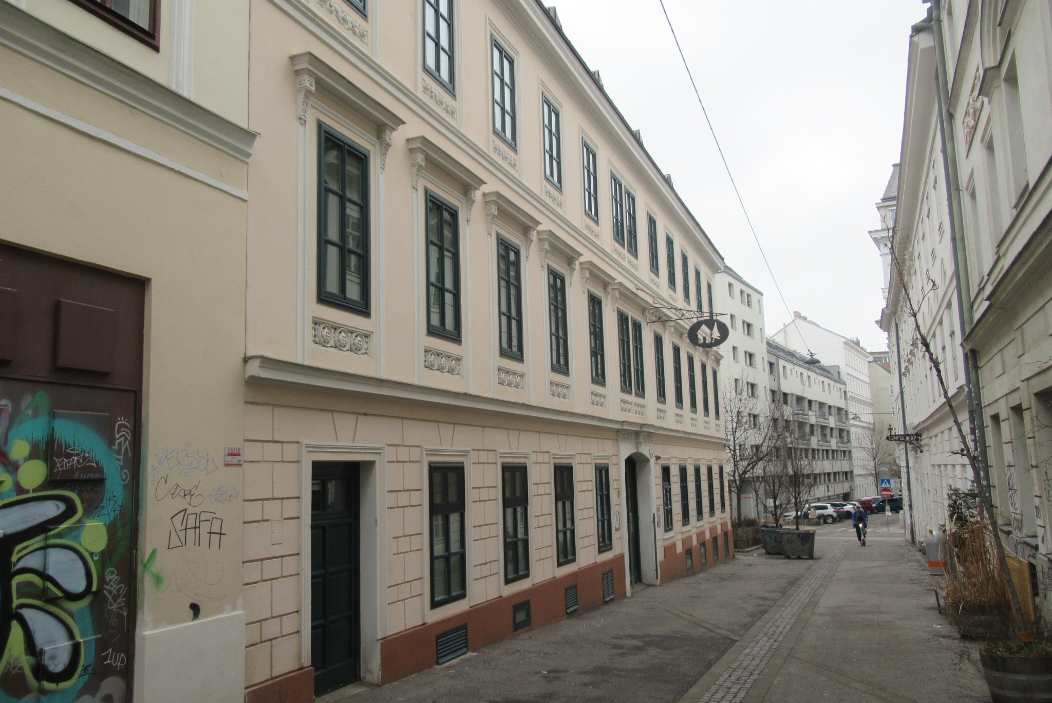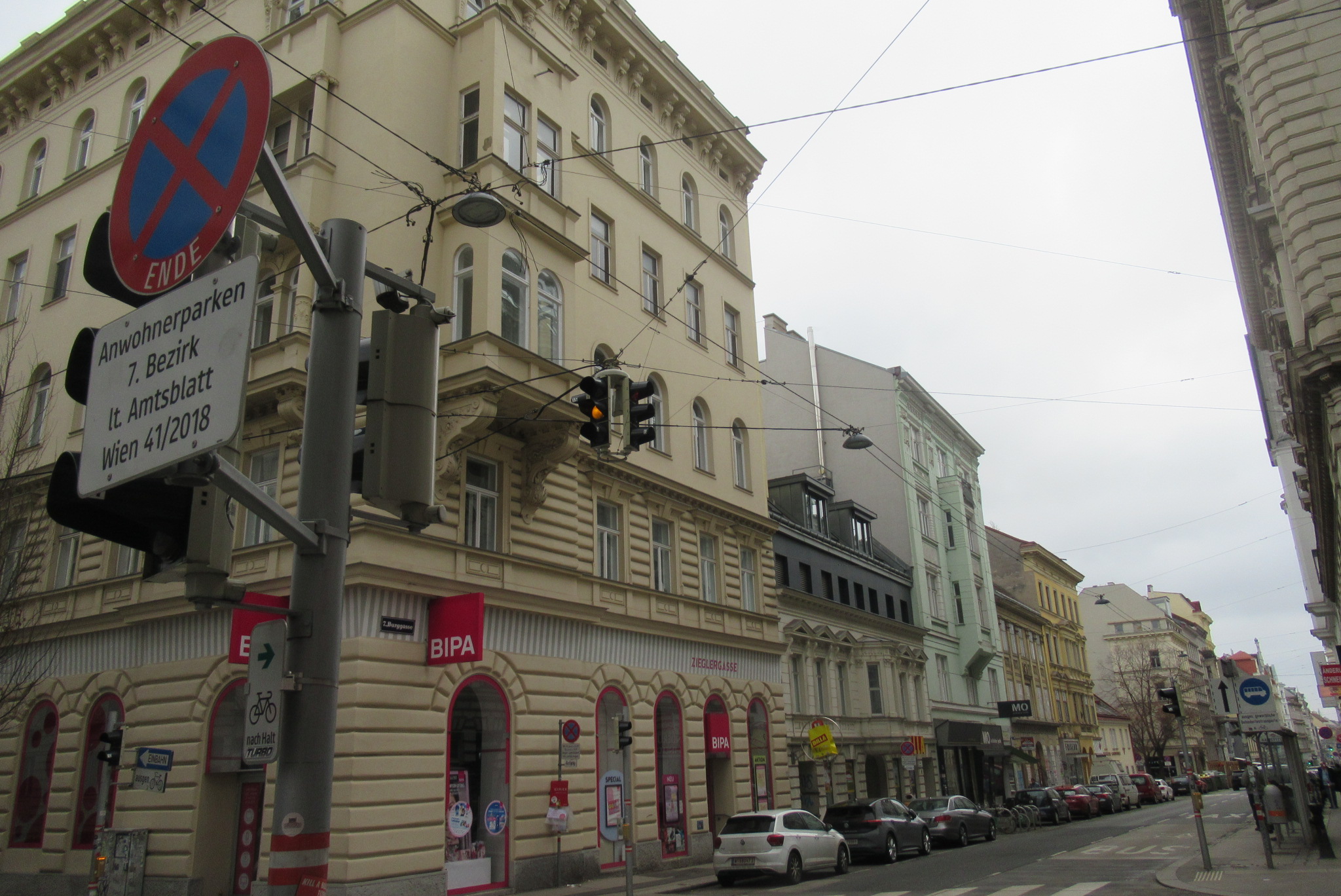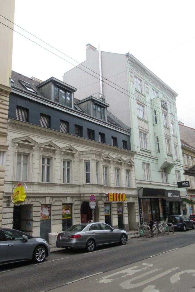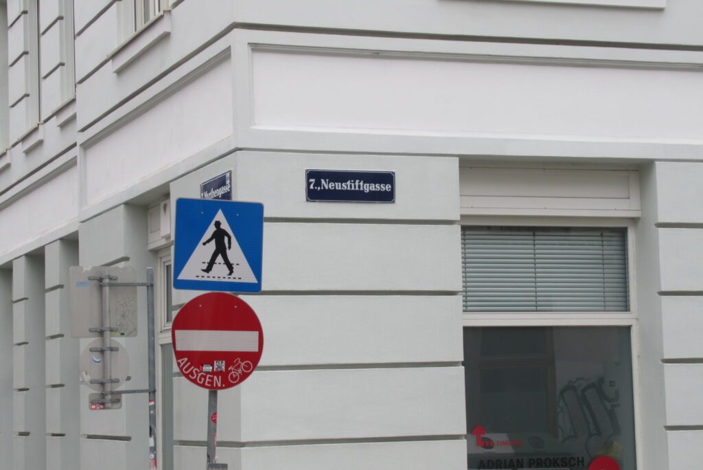 Februar 2026 – Vielfalt im 7. Bezirk Auf einer vergleichsweise kleinen Runde Schottenfeldgasse – Burggasse – Myrtengasse – Neustiftgasse ergibt sich beim Blick nach oben eine beeindruckende Abwechslung bei den Häuserfronten, Haustoren und mit speziellen Schilder-Funden