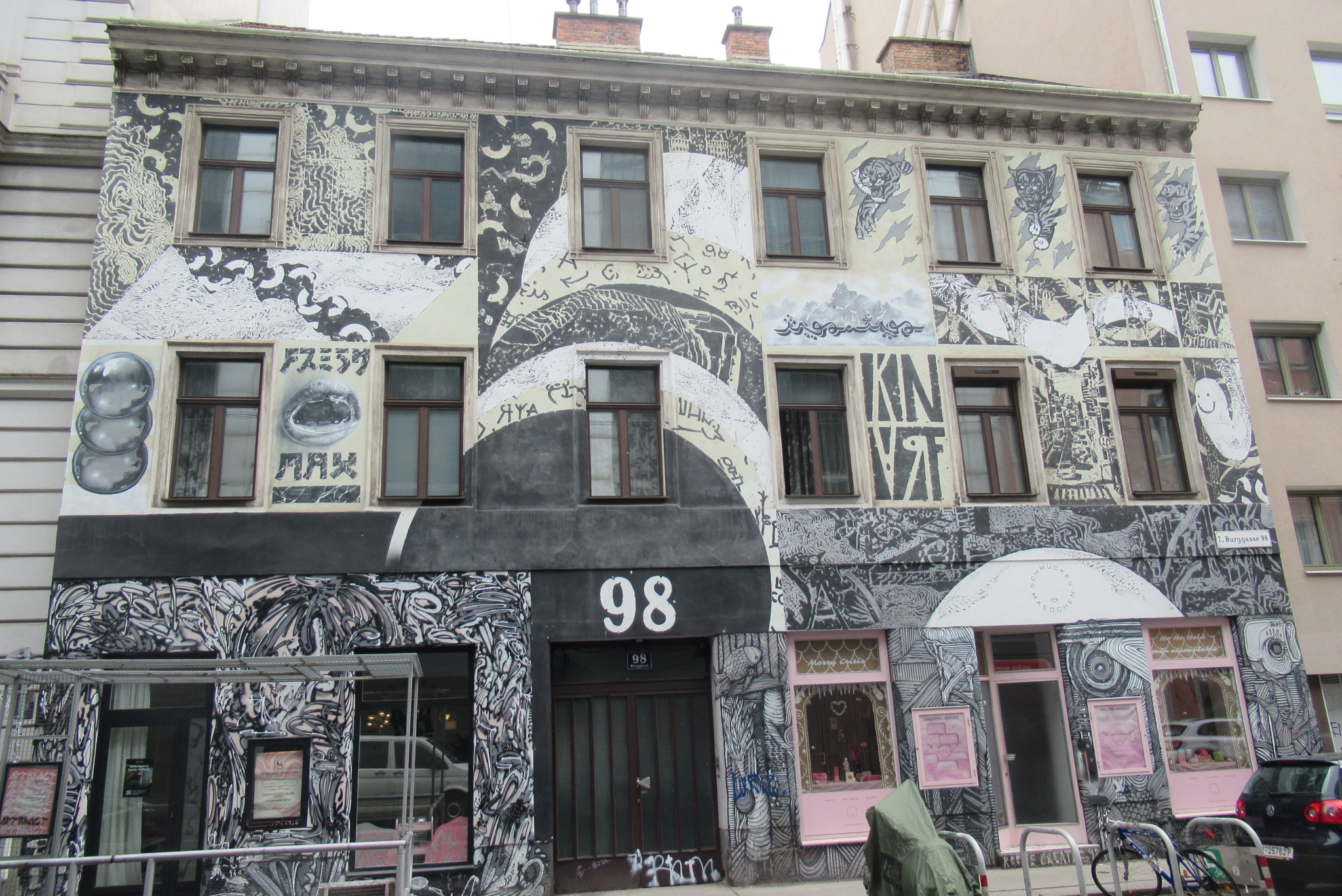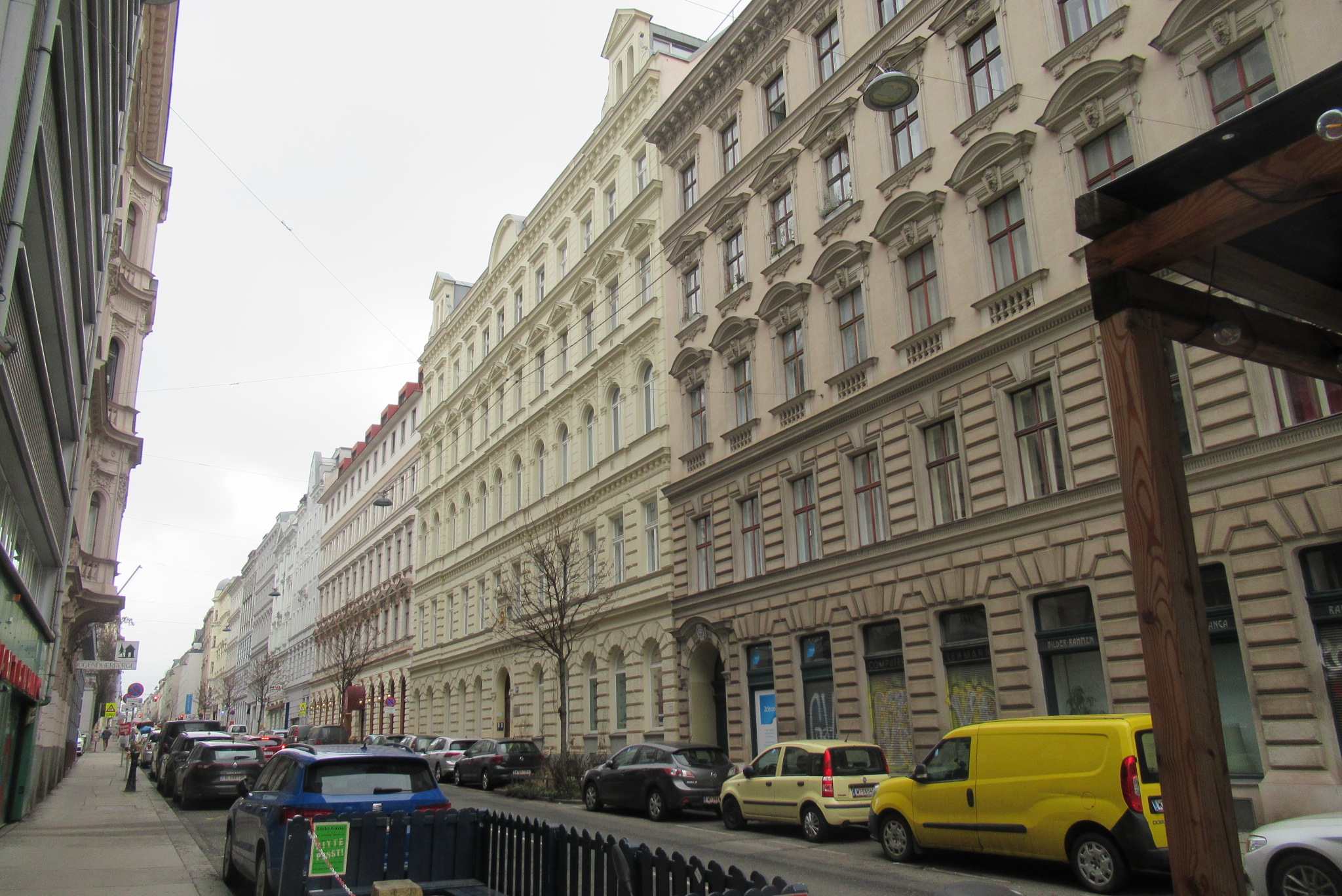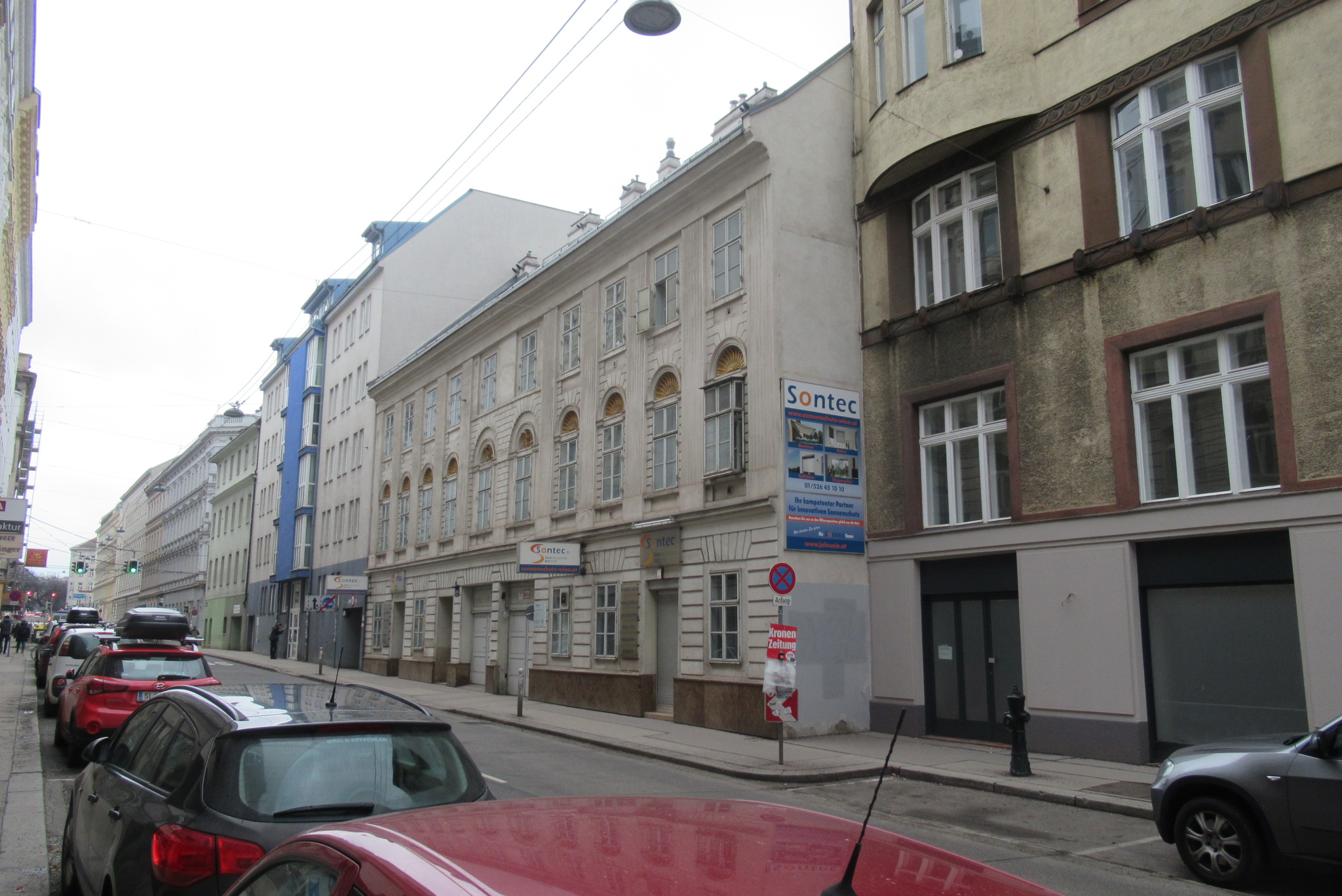 Februar 2026 – Vielfalt im 7. Bezirk Auf einer vergleichsweise kleinen Runde Schottenfeldgasse – Burggasse – Myrtengasse – Neustiftgasse ergibt sich beim Blick nach oben eine beeindruckende Abwechslung bei den Häuserfronten, Haustoren und mit speziellen Schilder-Funden